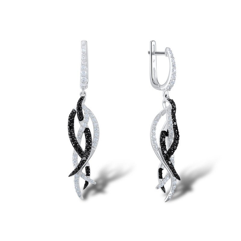 Sterling Silver Earrings Black spinel,White Cubic Zirconia (E305146BSNZSL925)