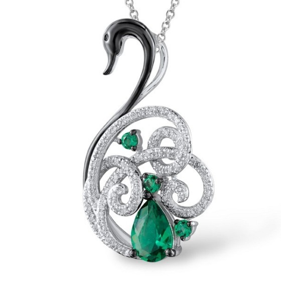 Sterling Silver Pendant Green Spinel,White Cubic Zirconia (P305045GSZSL925)