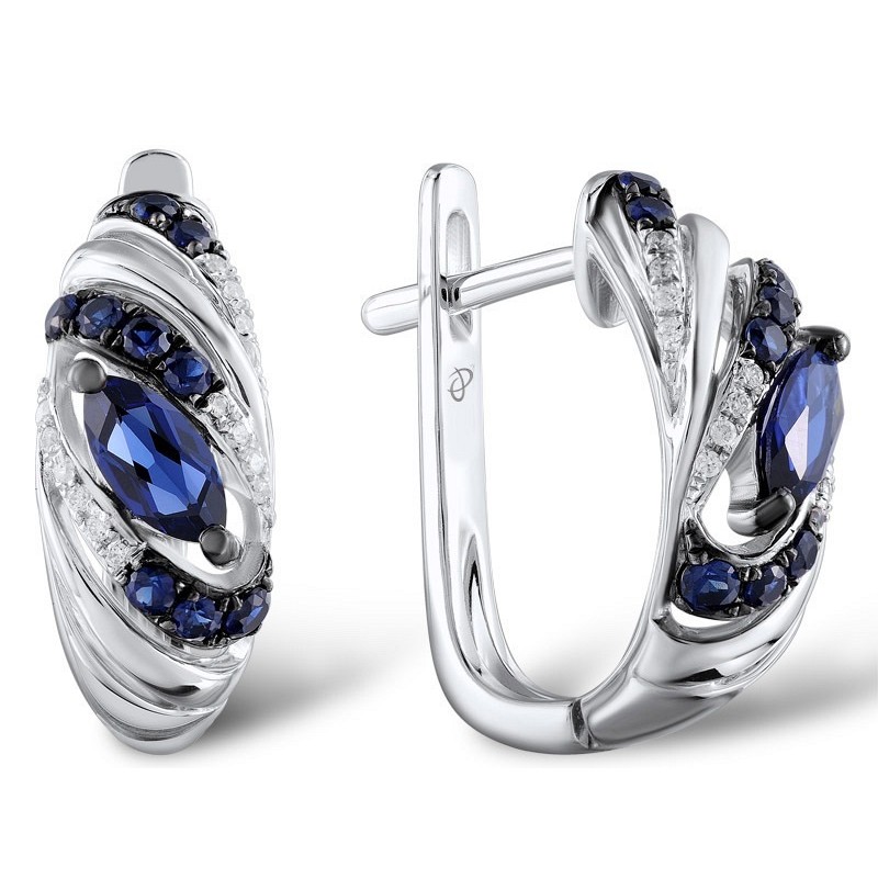 Sterling Silver Earrings Blue Nano Cubic Zirconia,White Cubic Zirconia (E304731CRSZSL925)