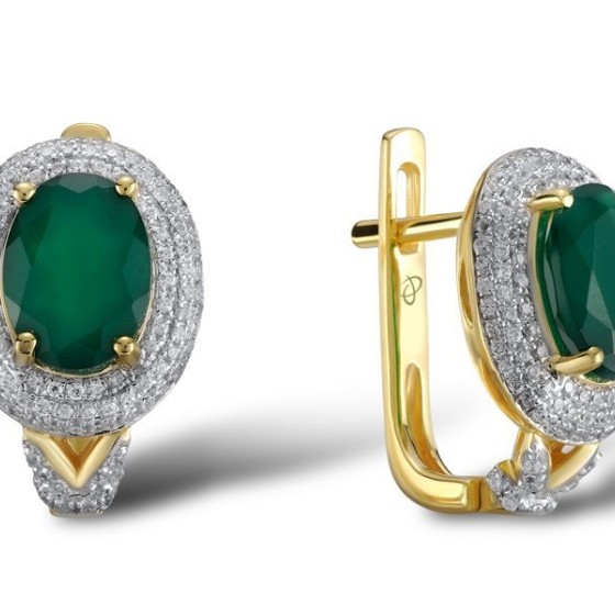 Sterling Silver w/ Yellow Plating Earrings Dyed Green Agate,White Cubic Zirconia (E304264CRSZSY925)