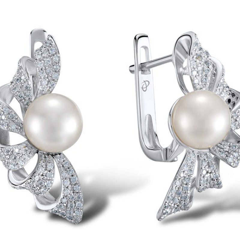 Sterling Silver Earrings Fresh Water White Pearl,White Cubic Zirconia (E304015FWZSL925)