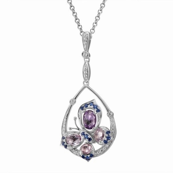 Sterling Silver Pendant Blue Nano Cubic Zirconia,Pink Sapphire,White Cubic Zirconia (P303688PSSZSL925)