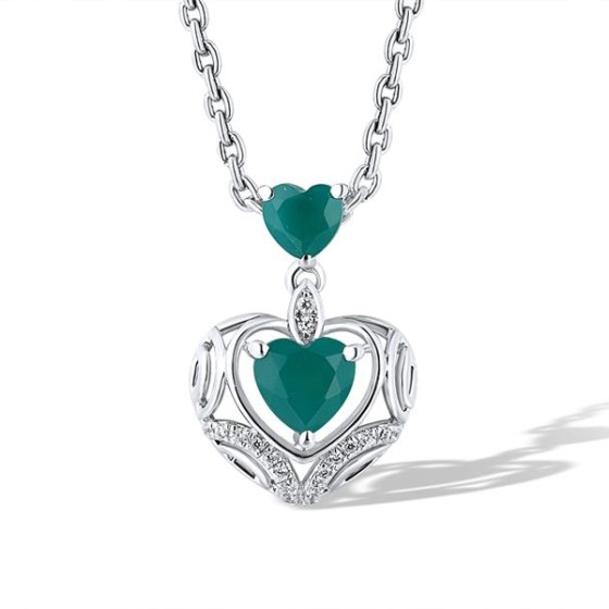 Sterling Silver Pendant Green Glass,White Cubic Zirconia (P303504GRGZSL925)