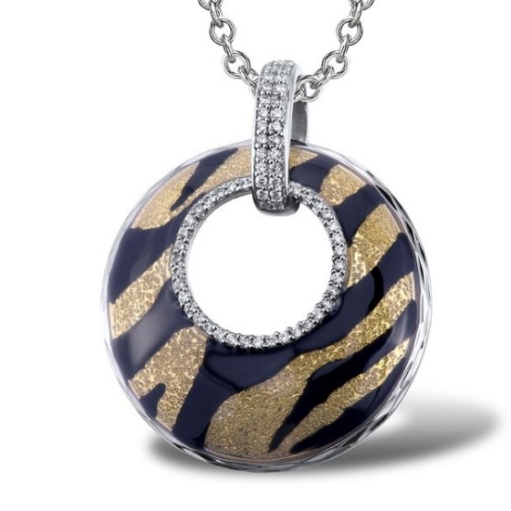 Sterling Silver Pendant Enamel,White Cubic Zirconia (P301263ENASL925)