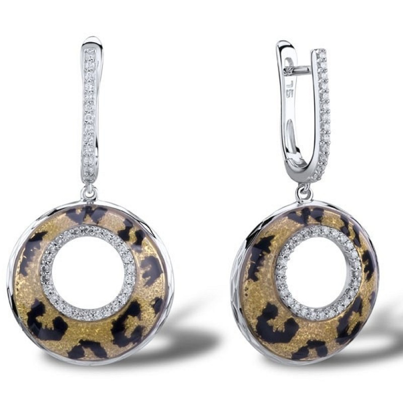Sterling Silver Earrings Enamel,White Cubic Zirconia (E301251ENASL925)