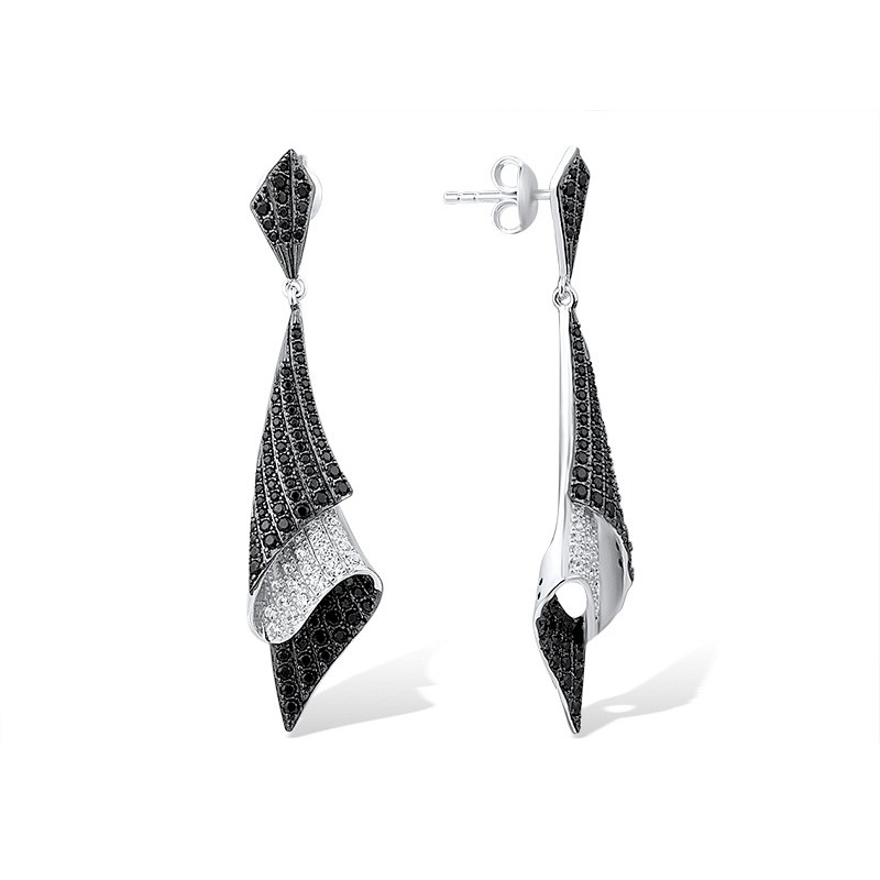 Sterling Silver w/ Black White Plating Earrings Black spinel,White Cubic Zirconia (E316056BSNZ1SK925)