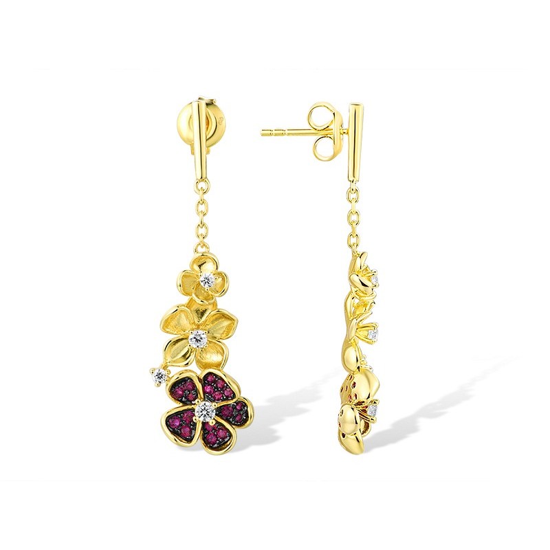 Sterling Silver w/ Rose Black Plating Earrings Created Ruby,White Cubic Zirconia (E316036CRZSD925)