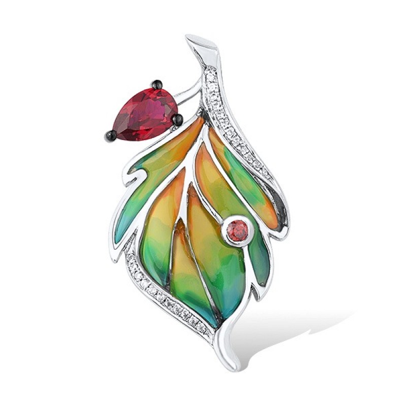Sterling Silver Pendant Enamel,Garnet Cubic Zirconia,Purple Glass,White Cubic Zirconia (P306723ENASL925)