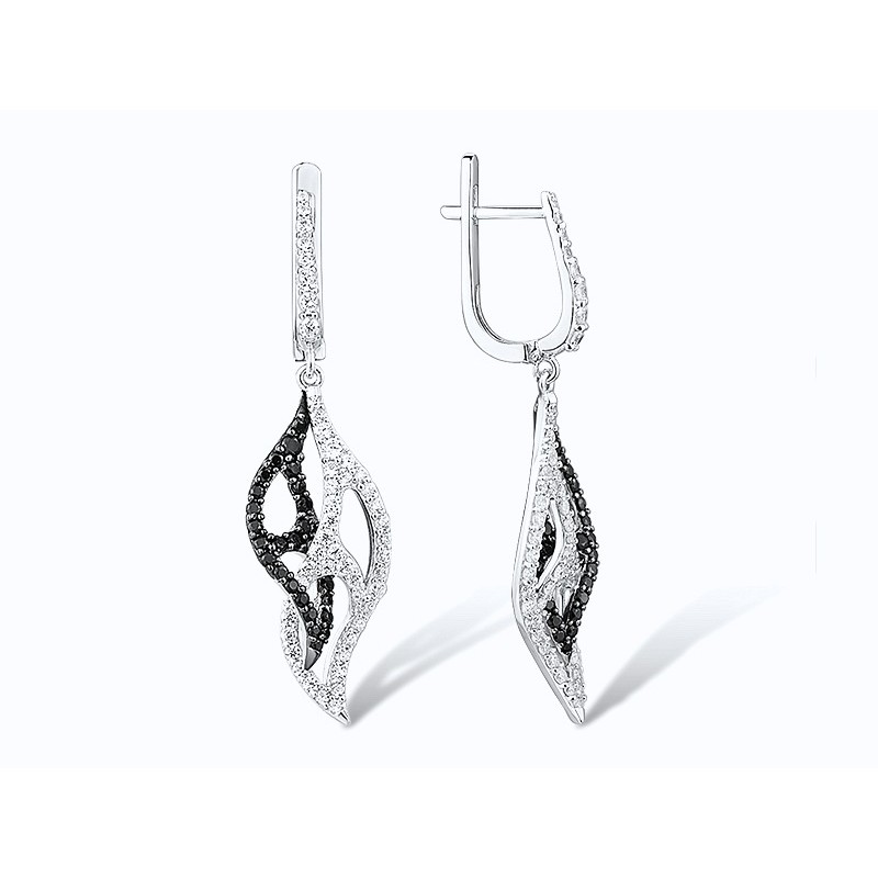 Sterling Silver w/ Black White Plating Earrings Black spinel,White Cubic Zirconia (E305568BSNZSK925)
