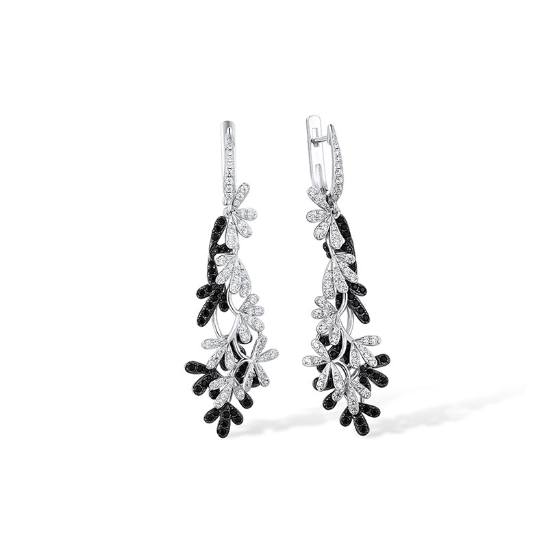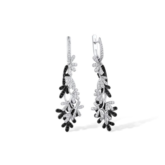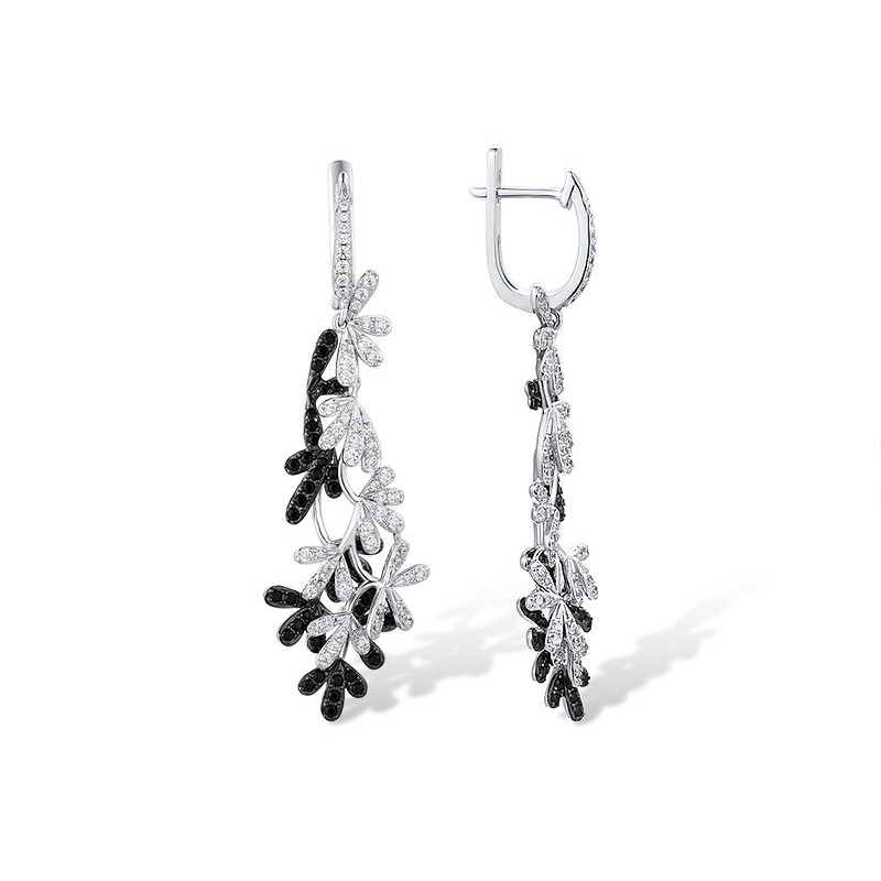 Sterling Silver w/ Black White Plating Earrings Black spinel,White Cubic Zirconia (E316096BSNZSK925)