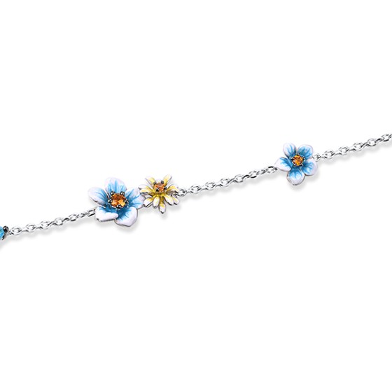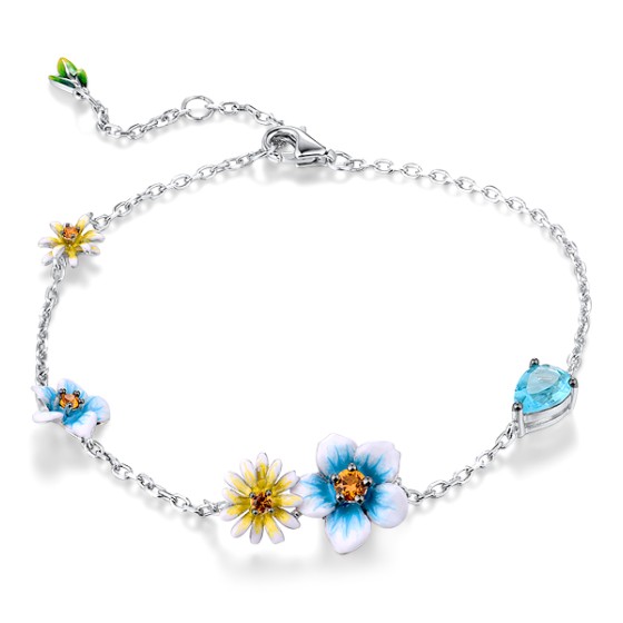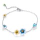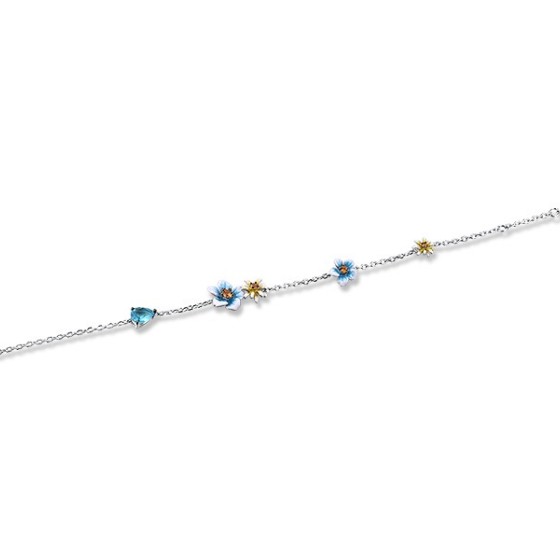 Sterling Silver w/ Black White Plating Bracelet Blue Glass,Enamel,Yellow Nano Cubic Zirconia (Ci (B316091ENASK925)