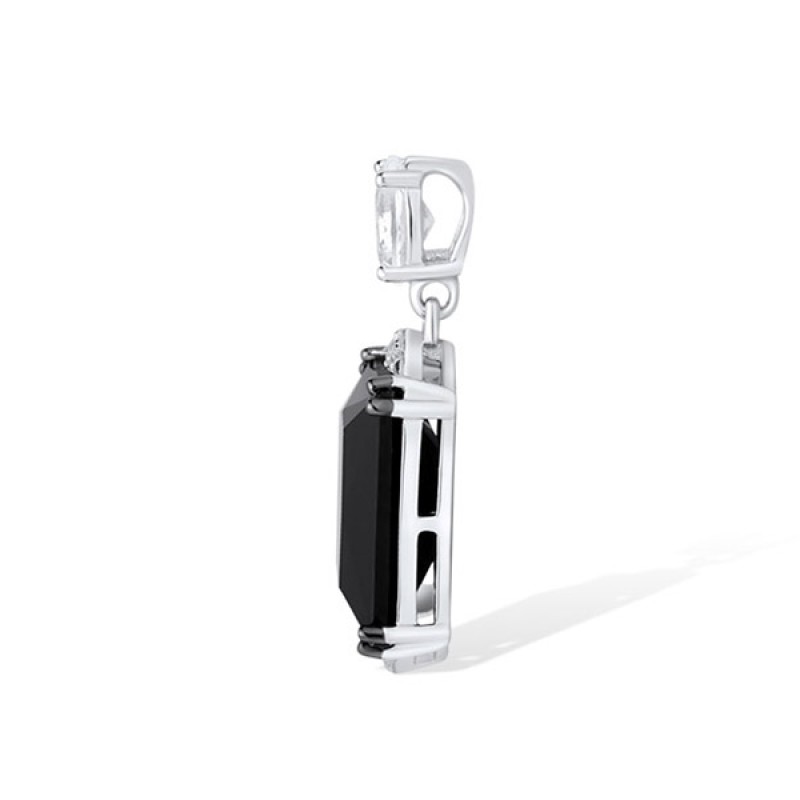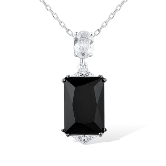 Sterling Silver w/ Black White Plating Pendant Black Glass,White Cubic Zirconia,White Glass (P315248WBGZSK925)
