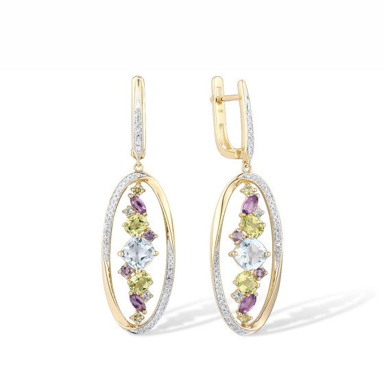 9KYW Earrings Amethyst,Blue Topaz (Sky Blue),Blue Topaz (Swiss Blue),Diamond,Peridot (E316666MUL9KYW)