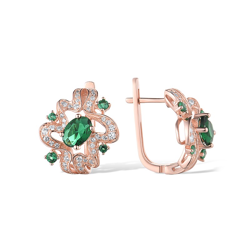 Sterling Silver w/ Rose Plating Earrings Green Glass,Green Spinel,White Cubic Zirconia (E316347GGNZ1SR925)
