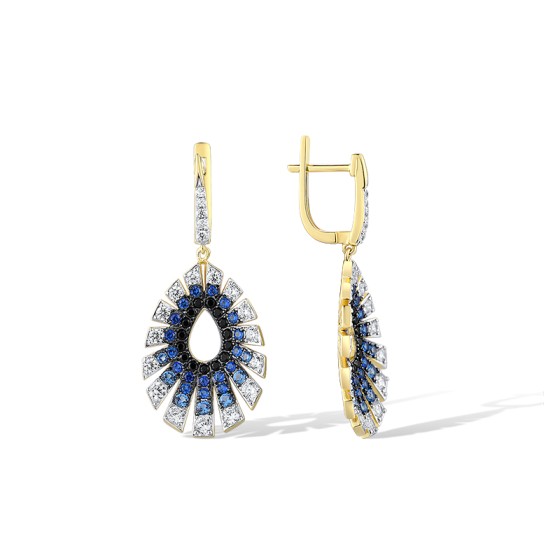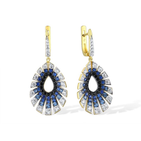 Sterling Silver w/ Yellow Black White Plating Earrings Black spinel,Blue Spinel,White Cubic Zirconia (E316226BBNZSZ925)