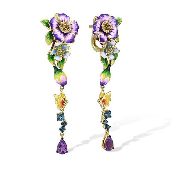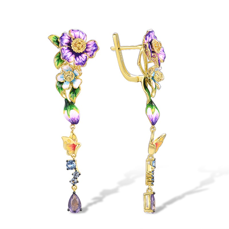 Sterling Silver w/ Yellow Black Plating Earrings Blue Spinel,Enamel,Purple Glass,Yellow Nano Cubic Zirconia (Ci (E314393ENASC925)