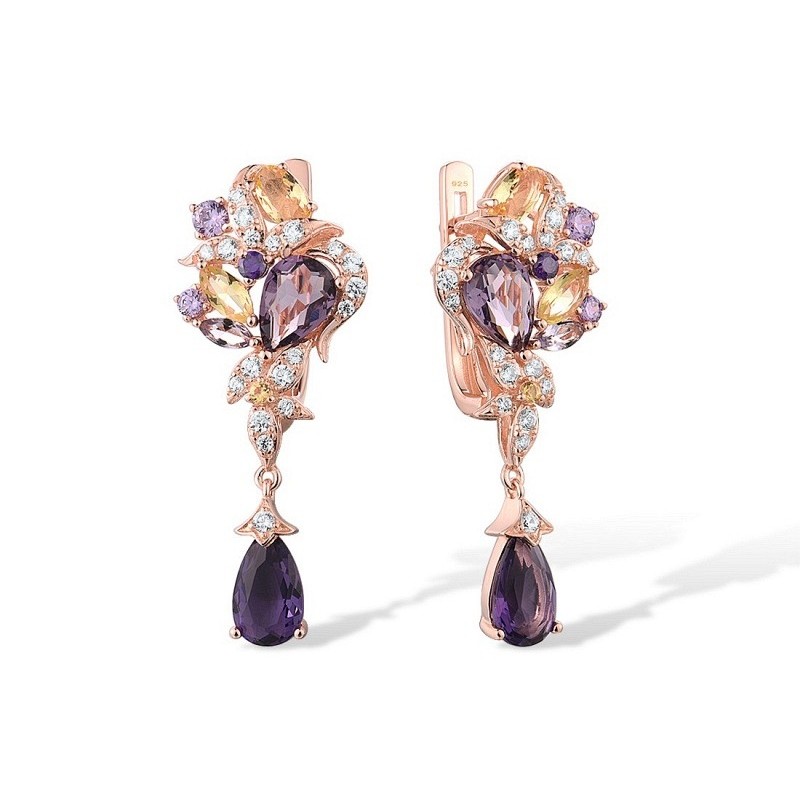 Sterling Silver w/ Rose Plating Earrings Amethyst Cubic Zirconia,Purple Glass,White Cubic Zirconia,Yellow Glass,Yellow Nano Cubic Zirconia (Ci (E316681MULSR925)