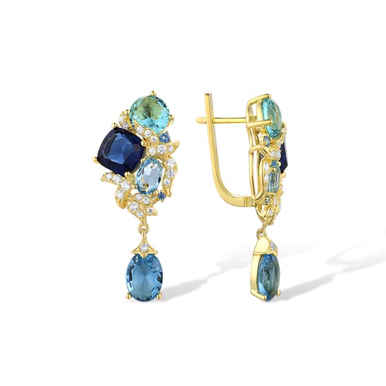 Sterling Silver w/ Yellow Plating Earrings Blue Glass,Blue Spinel,White Cubic Zirconia (E316680BGNZSY925)