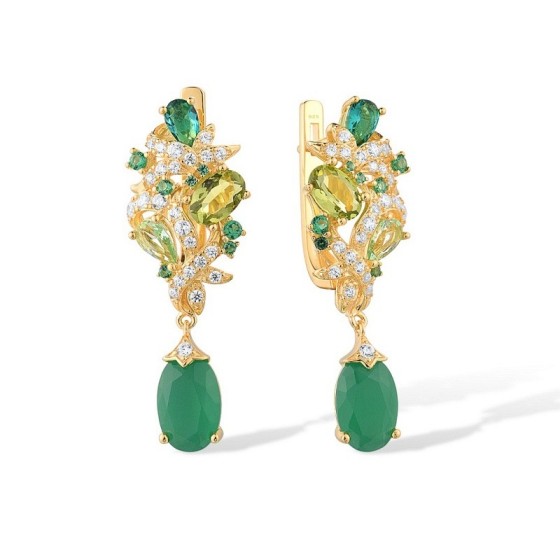 Sterling Silver w/ Yellow Plating Earrings Green Glass,Green Spinel,White Cubic Zirconia (E316679GGNZSY925)