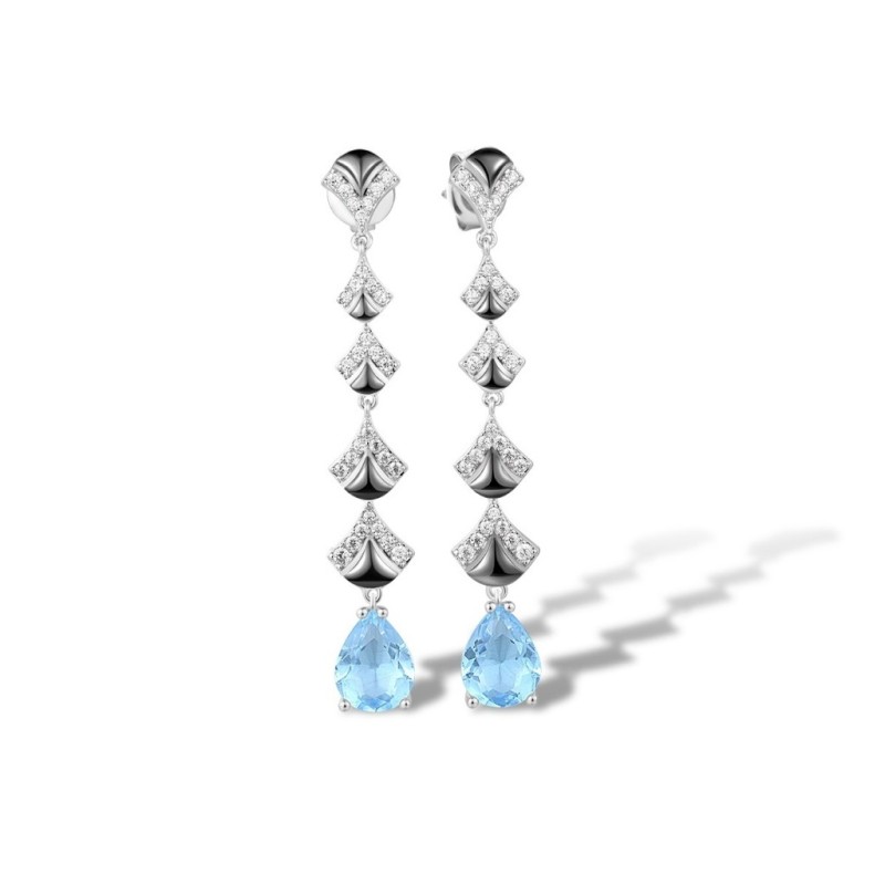 Sterling Silver w/ Black White Plating Earrings Blue Glass,White Cubic Zirconia (E316506BLGZSK925)