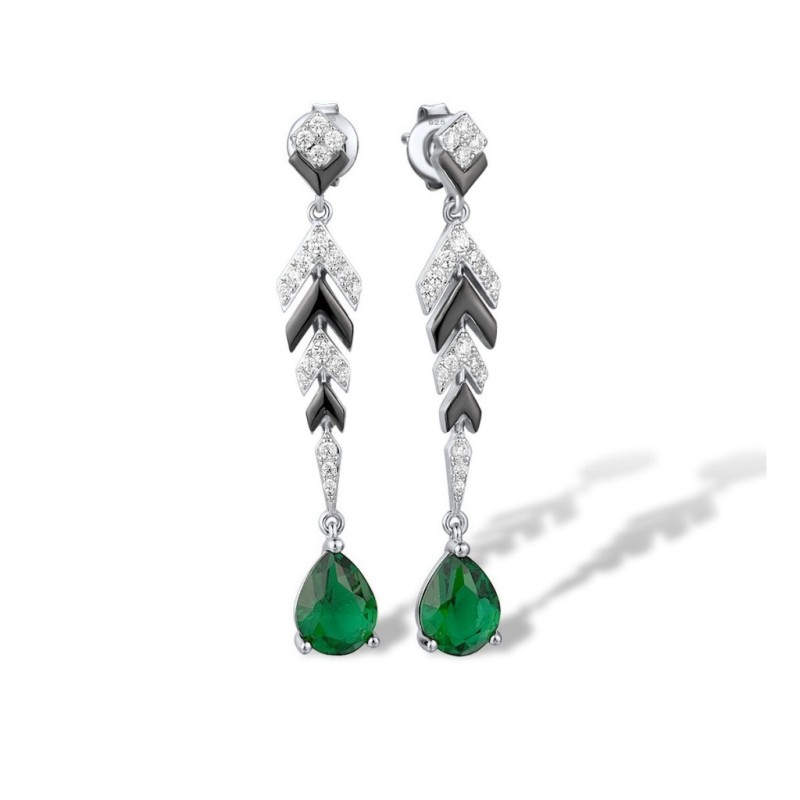 Sterling Silver w/ Black White Plating Earrings Green Glass,White Cubic Zirconia (E316505GRGZSK925)