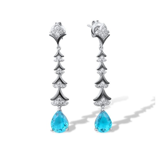 Sterling Silver w/ Black White Plating Earrings Blue Glass,White Cubic Zirconia (E316504BLGZ1SK925)