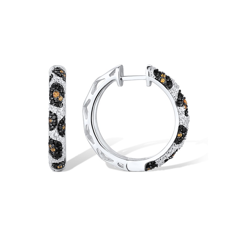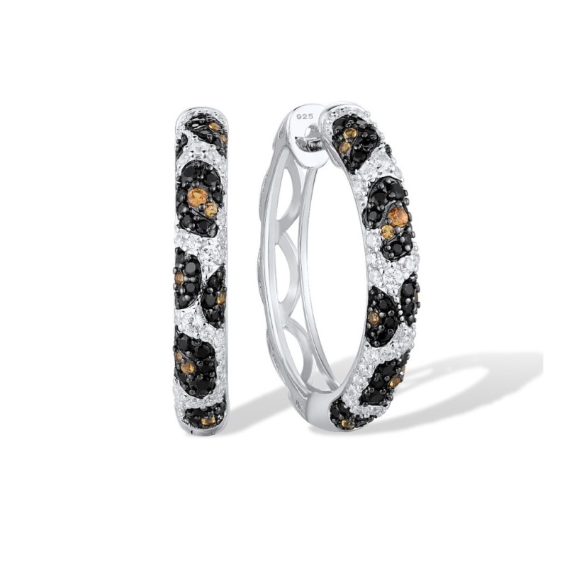 Sterling Silver w/ Black White Plating Earrings Black spinel,White Cubic Zirconia,Yellow Nano Cubic Zirconia (E316473YBNZSK925)