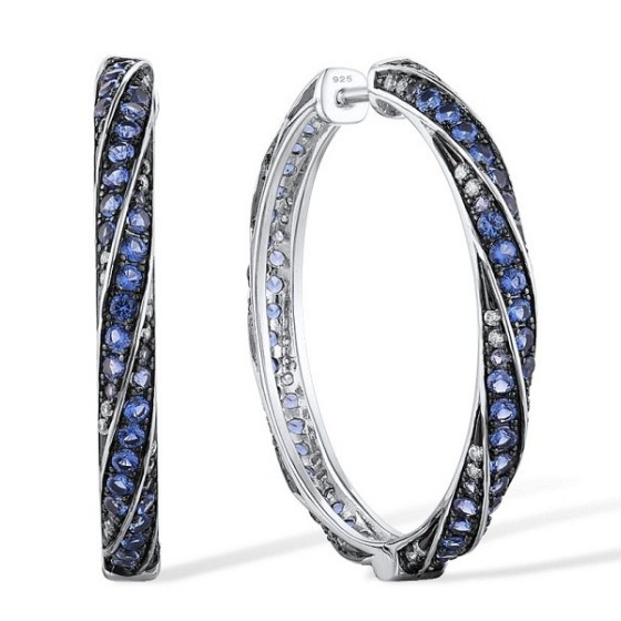 Sterling Silver w/ Black White Plating Earrings Blue Nano Cubic Zirconia,Blue Spinel,White Cubic Zirconia (E313949BNBZSK925)