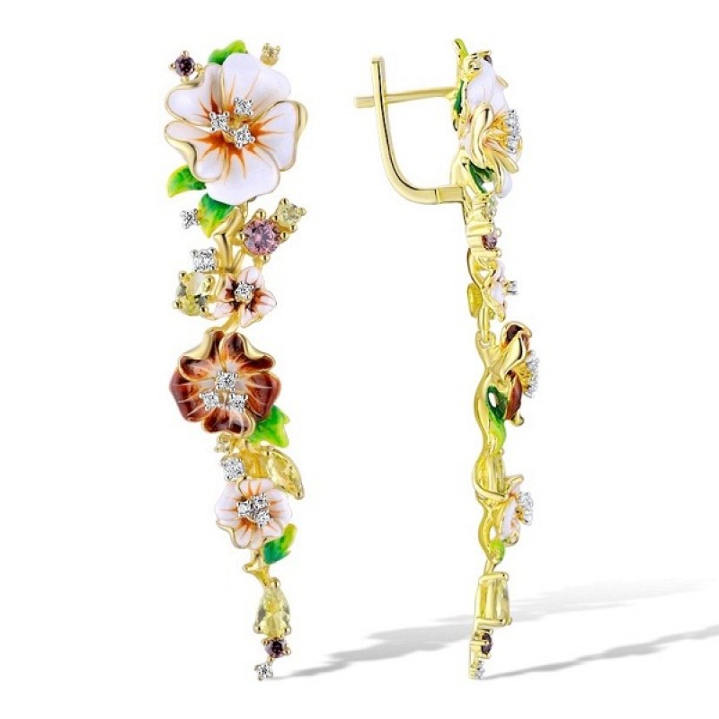 Sterling Silver w/ IONIC YELLOW PLATING Earrings Enamel,Green Nano Cubic Zirconia (Per,Rhodolite Garnet Cubic Zirconi,White Cubic Zirconia (E313615ENASP925)