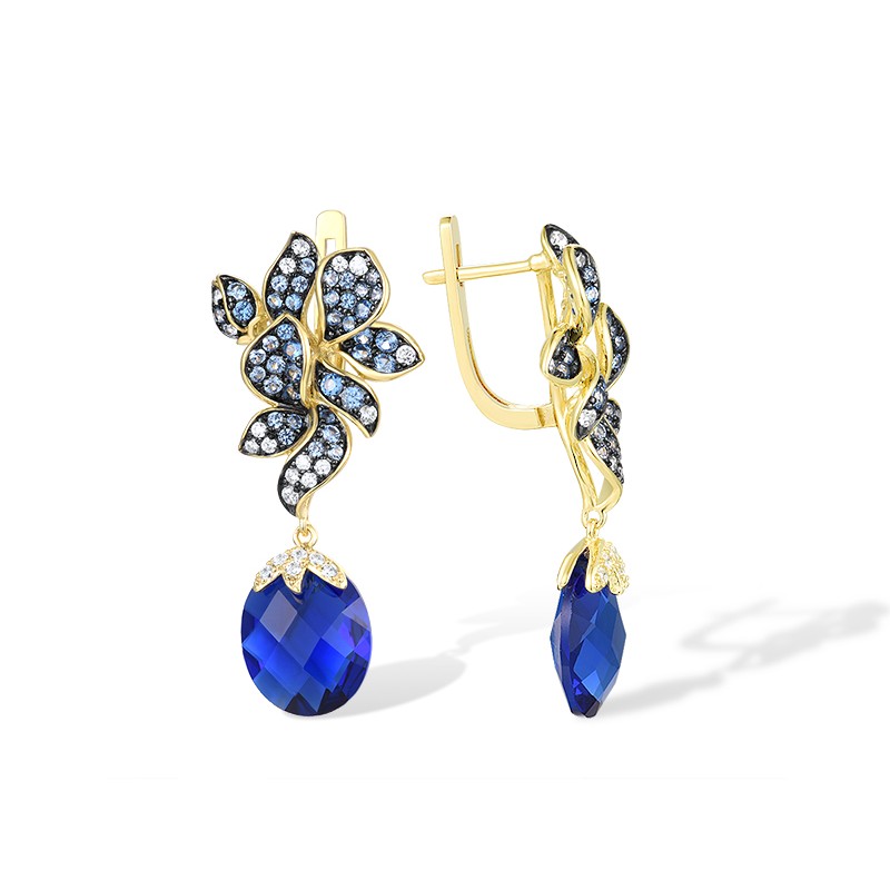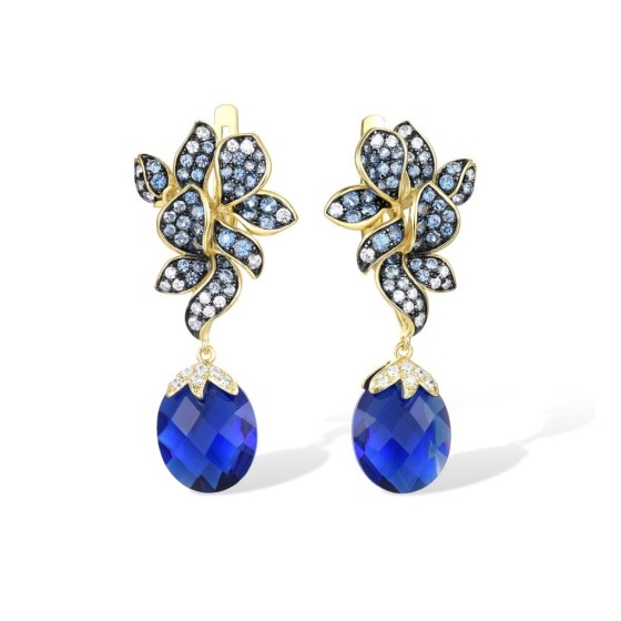 Sterling Silver w/ Yellow Black Plating Earrings Blue Glass,Blue Spinel,White Cubic Zirconia (E316682BGNZSC925)