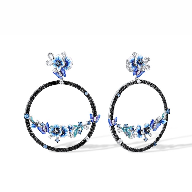 Sterling Silver w/ Black White Plating Earrings Black spinel,Blue Spinel,Enamel,White Cubic Zirconia (E316203ENASK925)