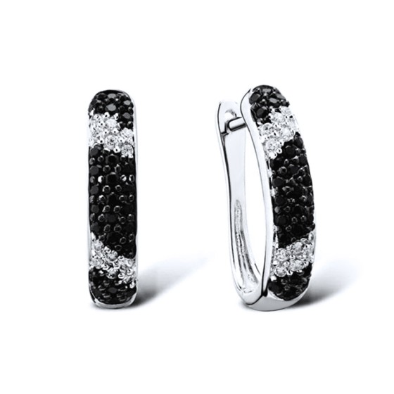 Sterling Silver Earrings Black spinel,White Cubic Zirconia (E301072BSNZSL925)