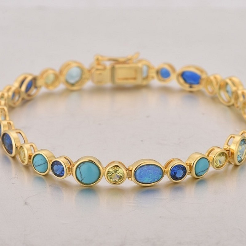 Sterling Silver w/ Yellow Plating Bracelet Blue Spinel,Created Blue Opal,Created Blue Turquoise,Green Nano Cubic Zirconia (Per (B315048MULSY925)