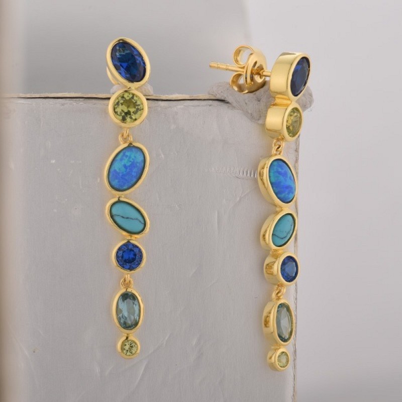 Sterling Silver w/ Yellow Plating Earrings Blue Spinel,Created Blue Opal,Created Blue Turquoise,Green Nano Cubic Zirconia (Per (E315048MULSY925)