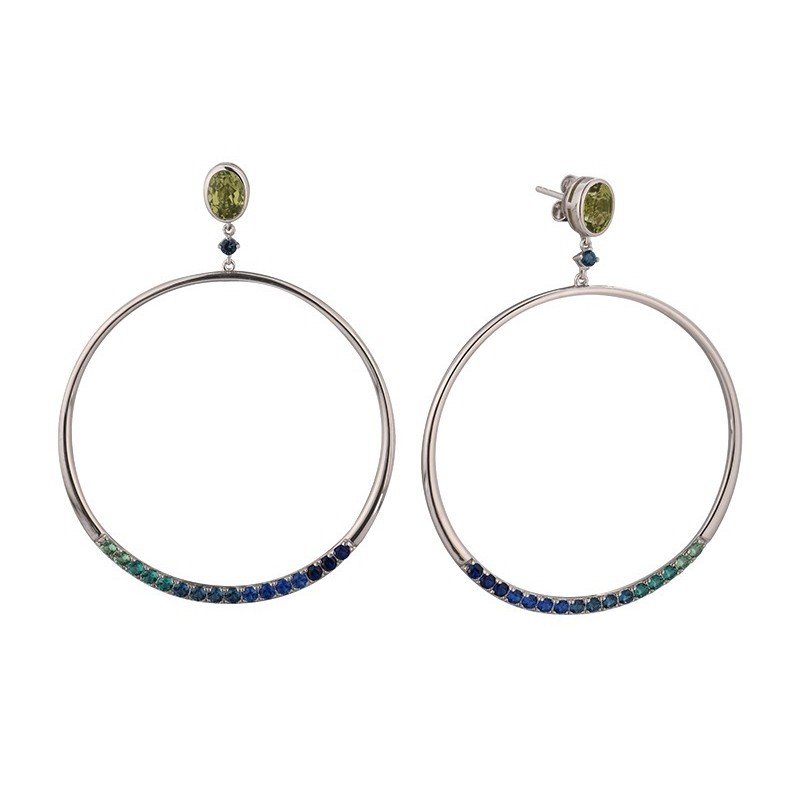 Sterling Silver Earrings Blue Spinel,Green Spinel (E315044BGZGSL925)