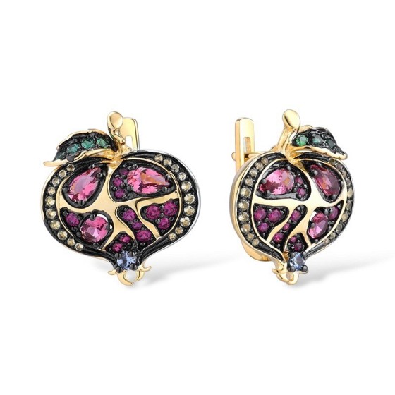 Sterling Silver w/ Yellow Black Plating Earrings Blue Spinel,Created Ruby,Green Nano Cubic Zirconia (Per,Green Spinel,Pink Glass (E311079MULSC925)