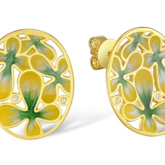 Sterling Silver w/ Yellow Plating Earrings Enamel,White Cubic Zirconia (E309611ENASY925)