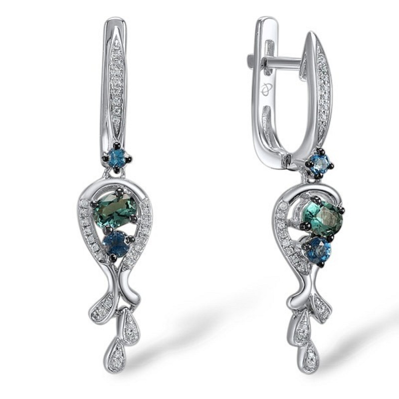 Sterling Silver Earrings Blue Glass,London Blue Topaz,White Cubic Zirconia (E308173LBGZSL925)