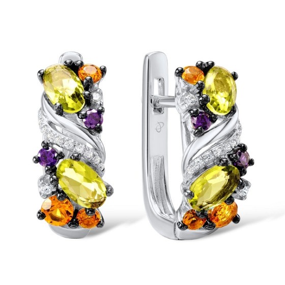 Sterling Silver Earrings Amethyst Cubic Zirconia,Green Glass,White Cubic Zirconia,Yellow Nano Cubic Zirconia (Ci (E307455MULSL925)