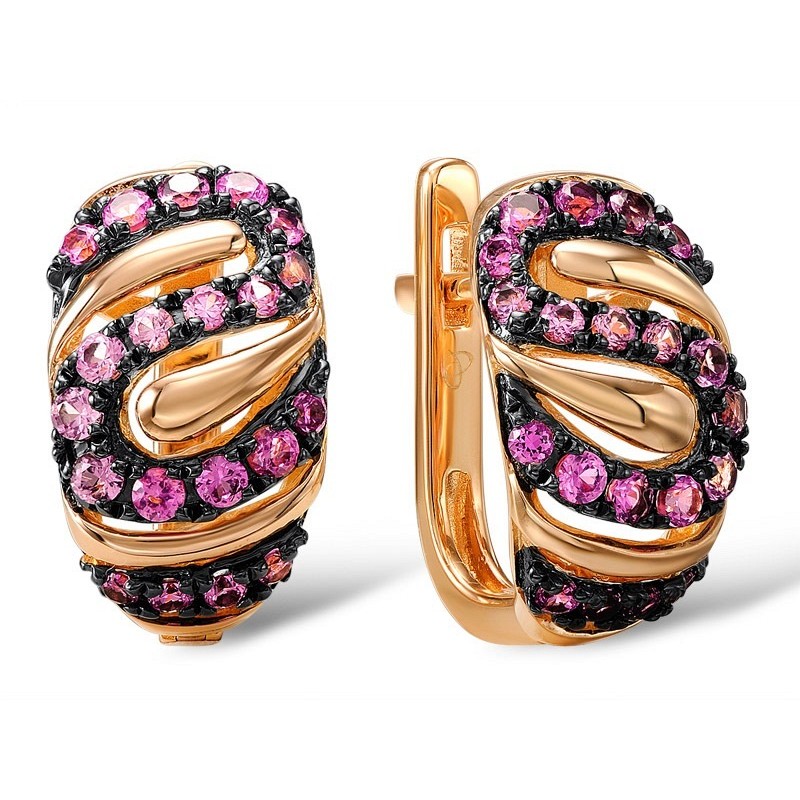 Sterling Silver w/ Rose Plating Earrings Created Pink Sapphire (E307425CPSSR925)