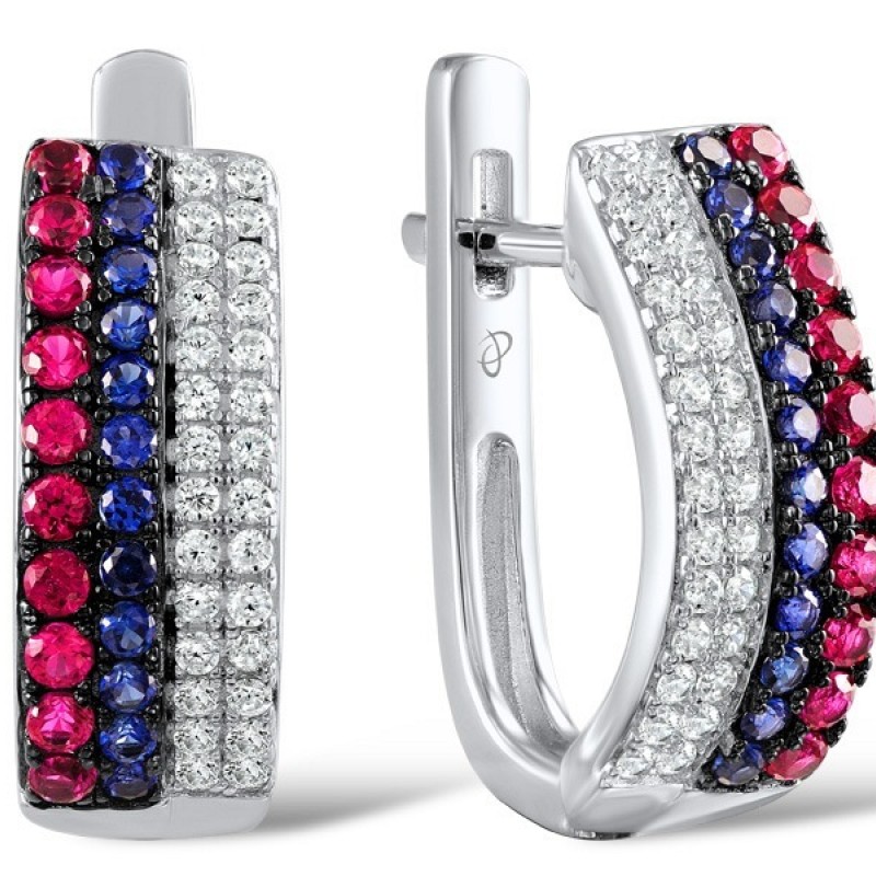 Sterling Silver Earrings Blue Nano Cubic Zirconia,Created Ruby,White Cubic Zirconia (E307210CUSZSL925)