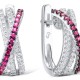 Sterling Silver Earrings Created Ruby,White Cubic Zirconia (E307183CRZSL925)