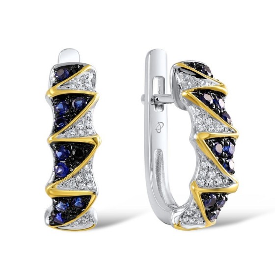 Sterling Silver Earrings Created Sapphire,White Cubic Zirconia (E307169CRSZSL925)