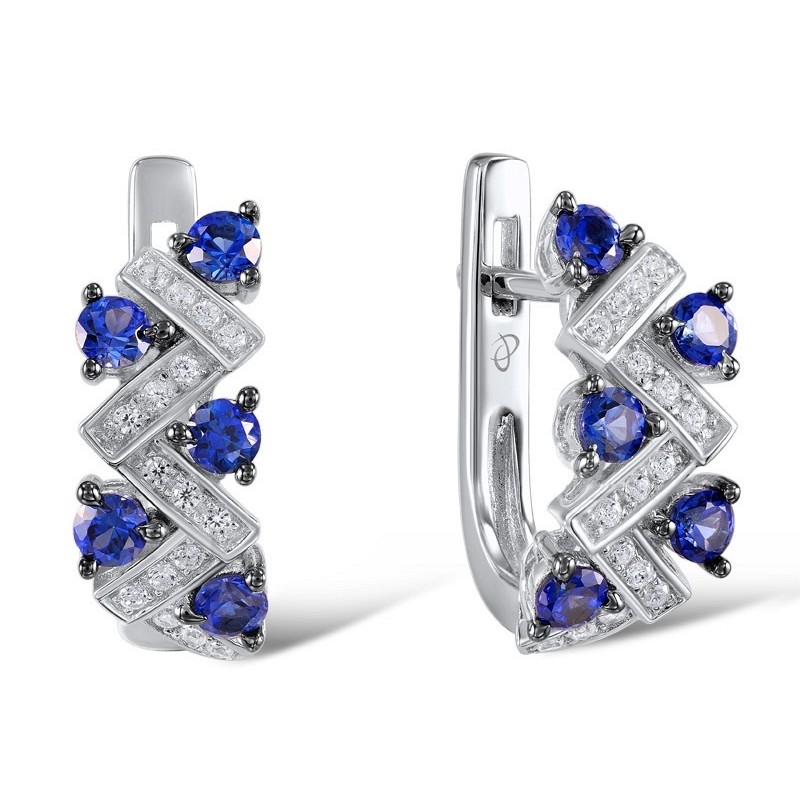 Sterling Silver Earrings Blue Nano Cubic Zirconia,White Cubic Zirconia (E306863CRSZSL925)
