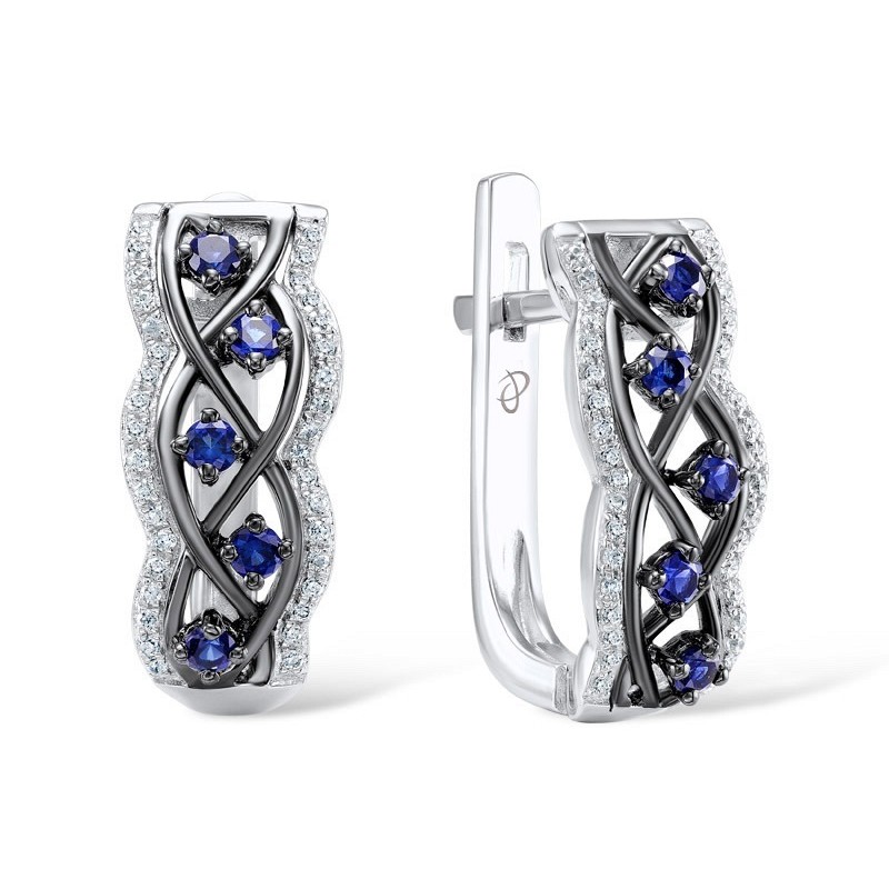 Sterling Silver Earrings Blue Nano Cubic Zirconia,White Cubic Zirconia (E306072CRSZSL925)