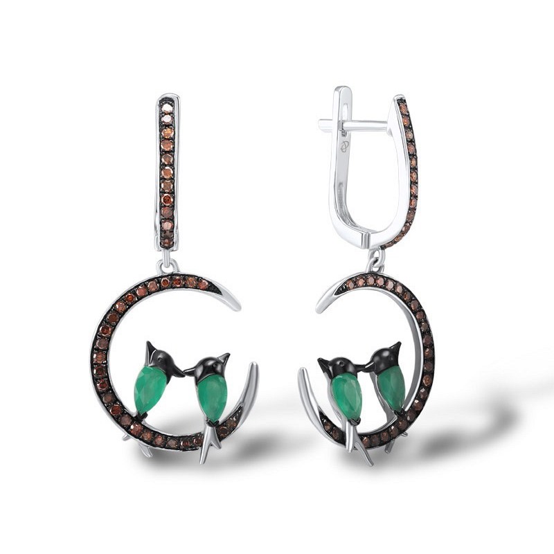 Sterling Silver Earrings Cognac Diamond,Green Glass (E305049CDGSL925)
