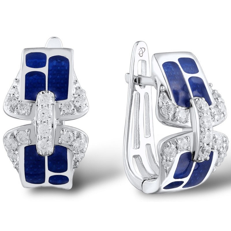 Sterling Silver Earrings Enamel,White Cubic Zirconia (E304824ENASL925)