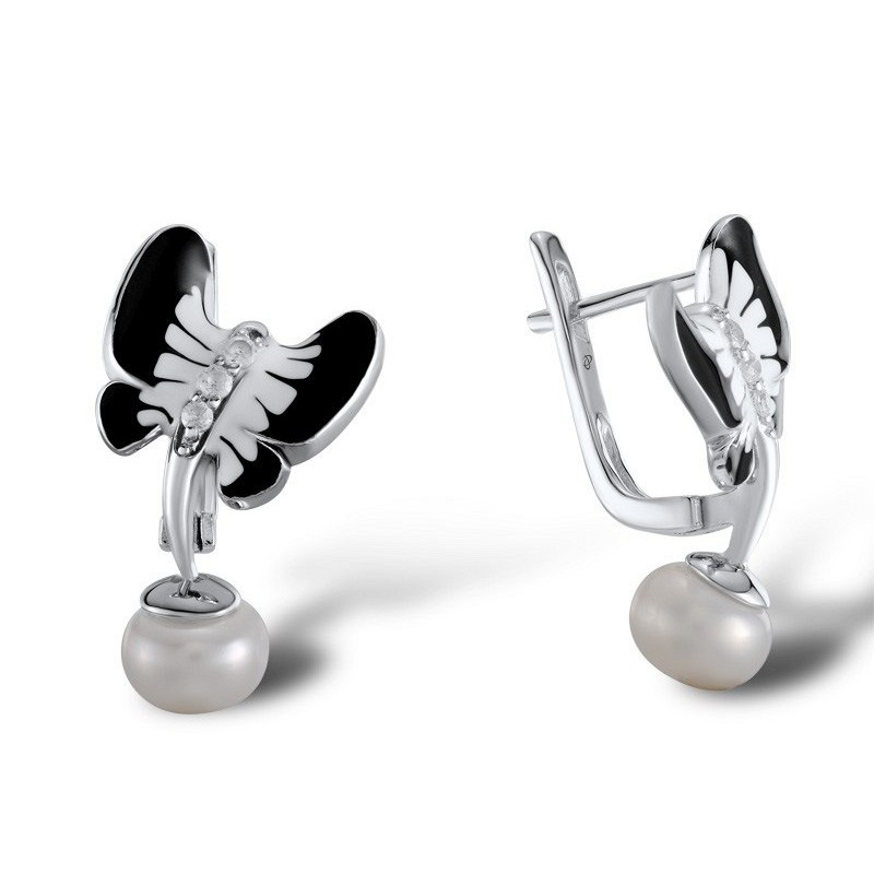 Sterling Silver Earrings Enamel,Fresh Water White Pearl,White Cubic Zirconia (E304593ENASL925)