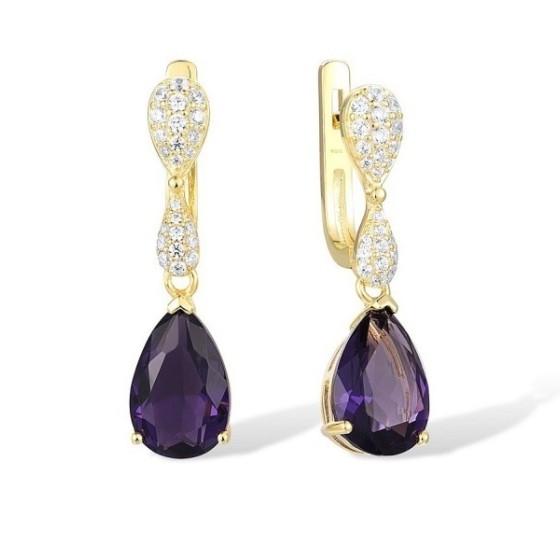 Sterling Silver w/ Yellow Plating Earrings Purple Glass,White Cubic Zirconia (E303468PGZSY925)
