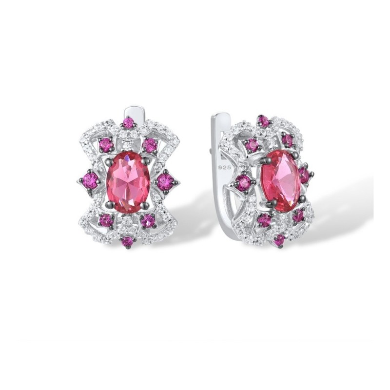 Sterling Silver w/ Black White Plating Earrings Created Ruby,Pink Glass,White Cubic Zirconia (E306606CUPZSK925)